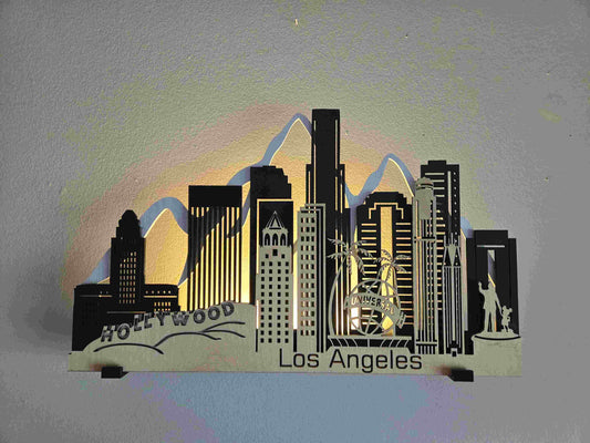 Los Angeles Skyline 3D Layered Laser Cut Wooden Cityscape Wall Art