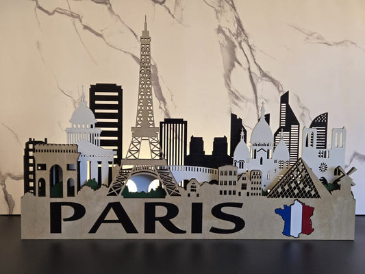 Paris City Skyline 3D Layered Laser Cut Wooden Wall Art | GAZER LASER