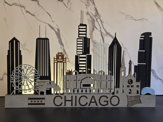 Chicago Skyline 3D Layered Laser Cut Wooden Cityscape Wall Art