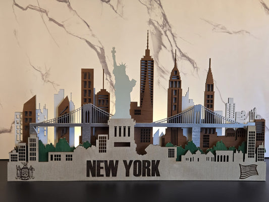 New York City Skyline 3D Layered Laser Cut Wooden Cityscape Wall Art