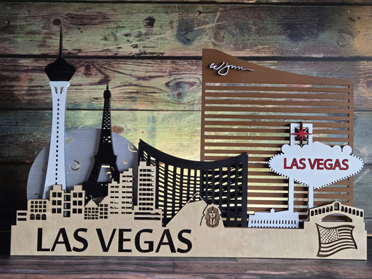 Las Vegas City Skyline 3D Layered Laser Cut Wooden Wall Art | GAZER LASER