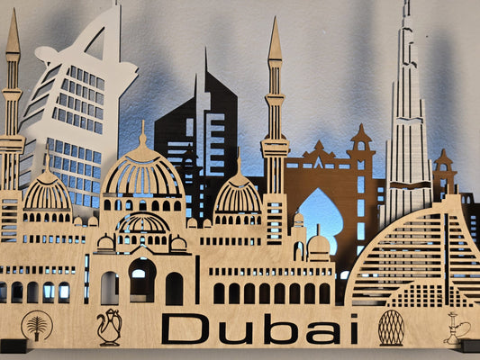 Dubai Skyline 3D Layered Laser Cut Wooden Cityscape Wall Art - Modern Home Decor
