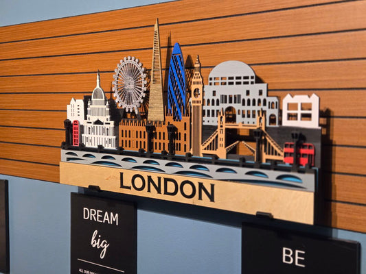 London City Skyline Wall Art – Layered Laser Cut Wooden Cityscape