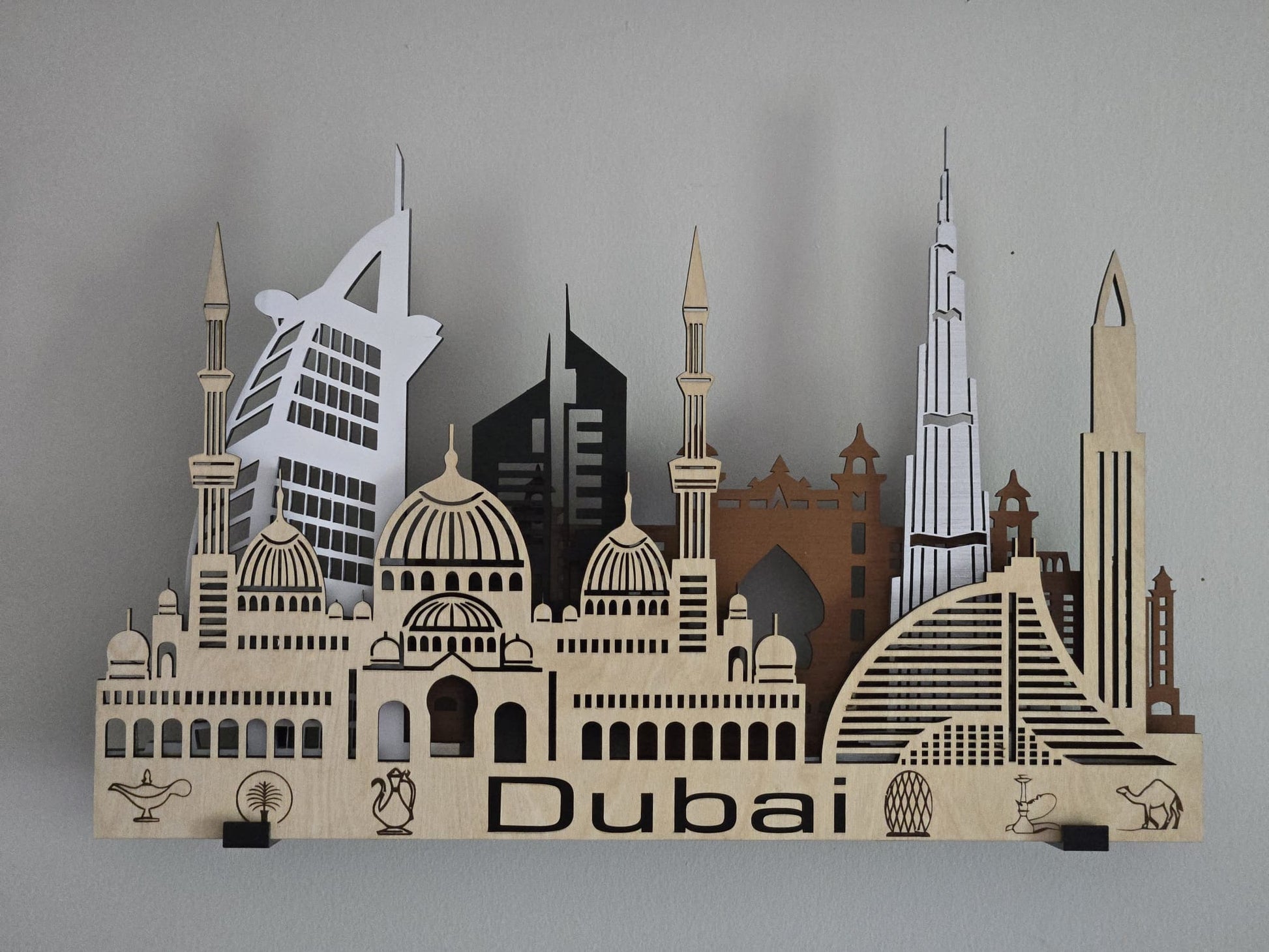 Dubai Skyline 3D Layered Laser Cut Wooden Cityscape Wall Art - Modern Home Decor